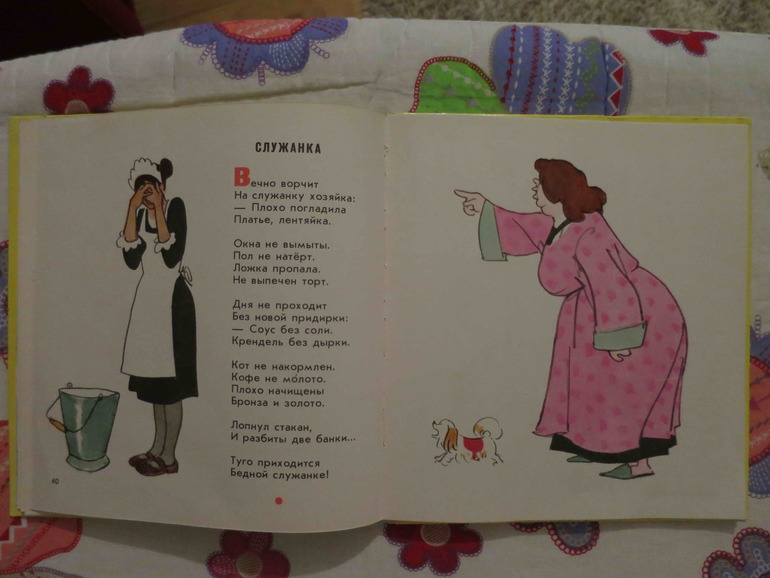 А вот эти странички, похоже, с первого момента стали дочиным "хитом". Сегодня стихотворение прочитано раз 15, всё жалеет бедную тётю - служанку! ...А меня насмешило почему-то "...крендель без дырки")