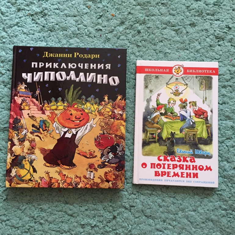 Книга большого формата про чиполлино с яркими рисунками, "сказка о потеряном времени" и другие истории этого же писателя.
