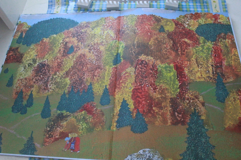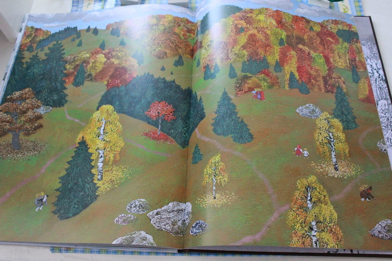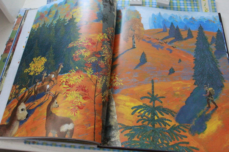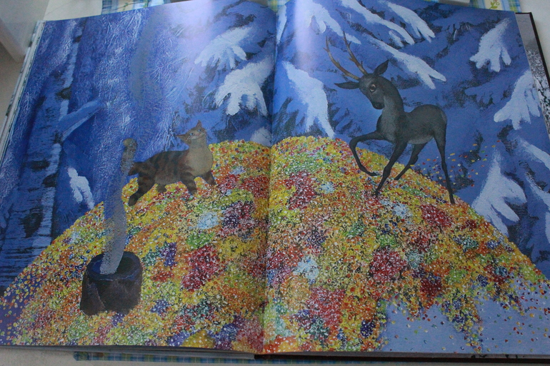 Вернемся же наконец к этой чудесной, трогательной сказке. Открывая книгу моментально оказываешься в золотой Осени, у Бычкова не просто осень, у него осень, осень, при взгляде на которую в глазах взрывается фейерверк красок, прям дыхание перехватывает от этого смелого буйства красок, впрочем чего я тут голословлю сами убедитесь сейчас: