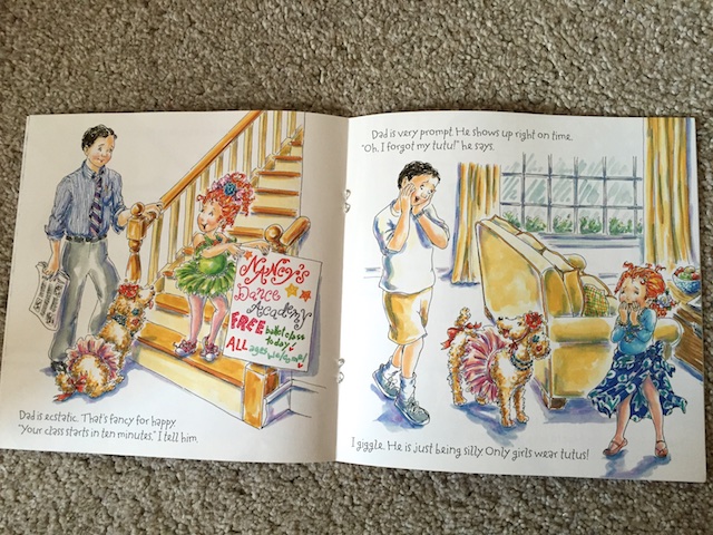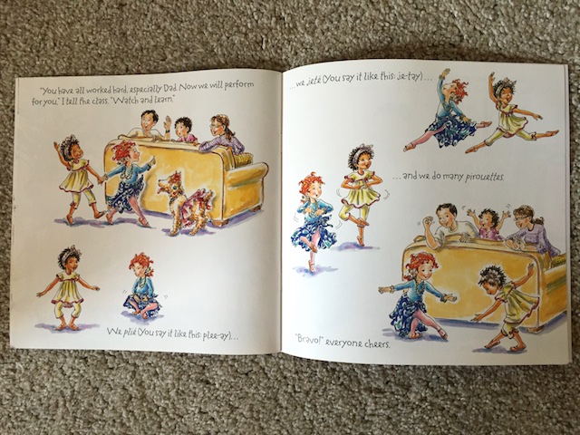 Я стараюсь каждый месяц предлагать Насте одну-две новые (или хорошо забытые) книжки на английском. Если не идет, убираю до лучших времен. Долго я присматривалась к этой серии про Fancy Nancy, она мне на Амазоне почему-то все время в рекомендованных выскакивает. Взяла одну на пробу, про балет, как раз наша тема. Прочитали пару раз, теперь Настя всем демонстрирует Pile, пируэт и арабеск)) Читать больше не соглашается, рассматривает часто. Мне книжечка неожиданно понравилась, очень милая. Дружная, добрая семья, Нэнси оказалась не такой пустышкой, как я себе по картинкам представила))