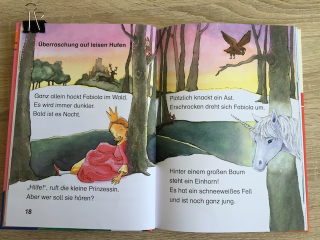 Подробнее покажу наше новое приобретение Zauberhafte Geschchten. Я купила эту книжку в надежде подержать интерес к немецкому чтению. Ориентировалась полностью на Настин вкус: истории про принцессу, единорога, пони и феечек))