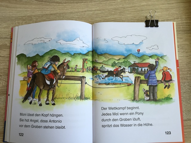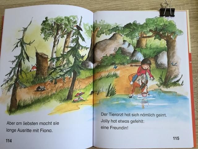 Книжка нам понравилась, мамам девочек из Германии рекомендую обратить внимание. Качество хорошее, неплохие иллюстрации. Под одной обложкой как бы три книги, авторы и иллюстраторы разные. Шрифт крупный, рассчитан на первое самостоятельное чтение. В конце есть вопросы и задания по тексту. Мы, конечно, пропускаем пока.