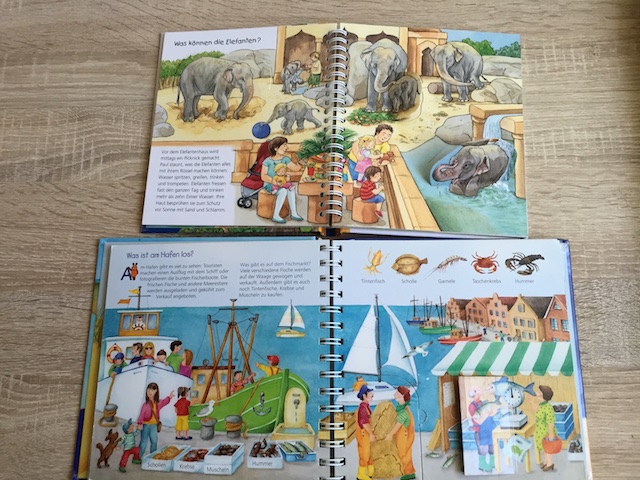 Две книжки с окошками, взяла, так как Настя с немецкой бабушкой ходили в зоопарк, а я надеялась, что мы в июле съездим на море. Визуализация мечты не помогла((