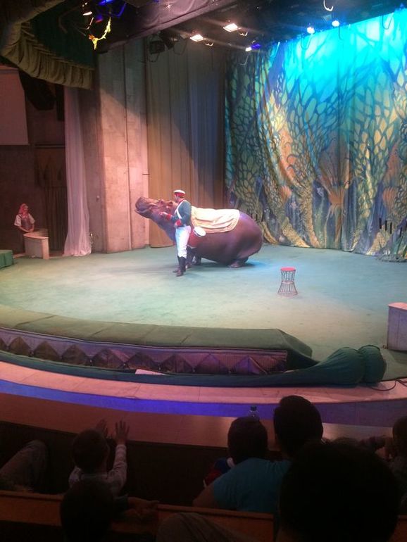 Надо сказать, что сначала я никак не могла понять, с чего начать, именно поэтому решила поделиться своей историей. Я смотрела книгу "Грамматика Фантазии" известного Джанни Родари , еще очень расхваленную книгу с инсценировками сказок, но все никак не приходило это начало, тогда я просто остановилась. И прочитала нашу первую сказку. Первую в книге Сонных сказок, вкратце про то, как сказка разговаривала в лесу с ежиком и зайчонком, рассказывая им каждому свою сказку, от чего те, что делали? Тоже, что и наши малыши...мечтали и представляли. Думаю именно благодаря этому, дочка так легко восприняла и ПОНЯЛА представление в уголке Дурова, под названием "В гостях у сказки", где детишек порадуют не только многочисленные дрессированные звери- бурый медведь, лиса, волки, гуси, кролики, коты, пеликаны, морской лев, попугаи и даже (до сих пор не верим) бегемот!, но и сама сказка, которая разговаривает с детишками, а все звери являются лишь ее сюжетом.