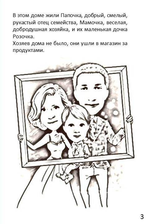 "Папочка, Мамочка и Розочка" - пародия на сказку "Три медведя". Делала из раскрасок и наших обработанных фото.