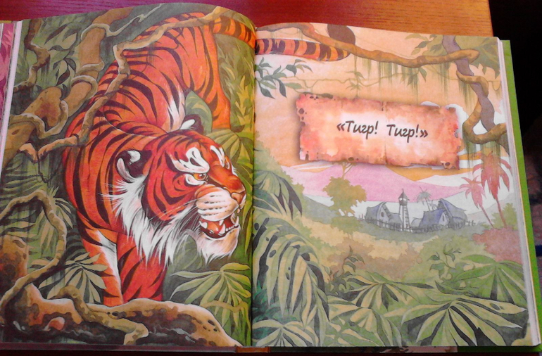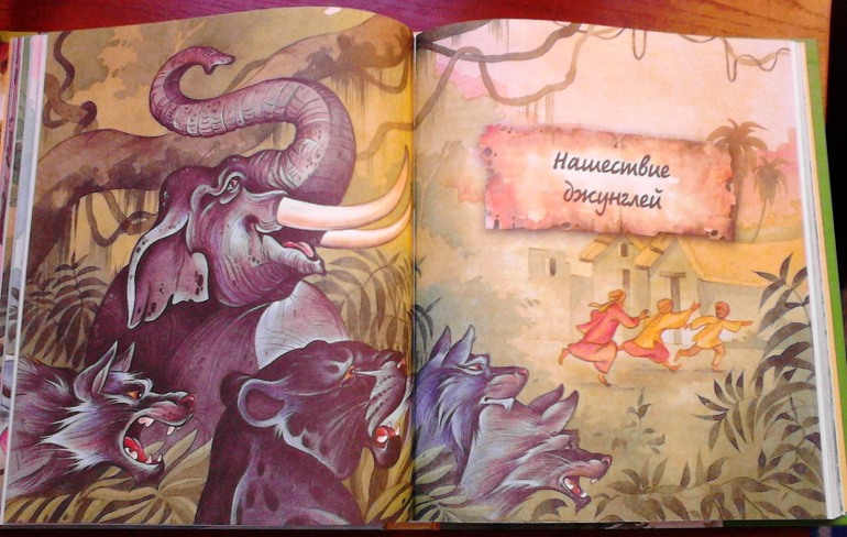 Очень давно хотела купить "Маугли" Редьярда Киплинга. Книга качественная, шрифт чёткий, крупный, но вот иллюстрации Пала Репринцева мне не понравились: чересчур, на мой вкус, агрессивные, тёмные, резкие. Впрочем, это мой субъективное мнение.