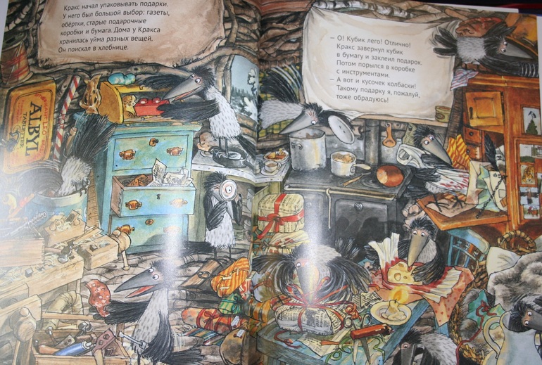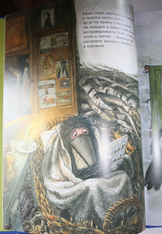 дошкольникамСкоро наступит Рождество, а Кракса никто не спешит поздравить. Поэтому он сам решил себя поздравить и упаковал все свои вещи в газету и бумагу, чтобы подарить их самому себе. Но, подарки, подаренные себе самому, не смогли создать атмосферу Рождества и праздника. Неожиданно для Кракса его лучшая подруга Мама Му приготовила ему необычный сюрприз. Для этого им предстоит сесть на велосипед и поехать в лес. Что-же такого сделала для Кракса Мама Му, Вы узнаете, прочитав историю до конца. Мудрые, жизненные, поучительные истории Юя и Томаса Висландера про жизнерадостную и оптимистичную корову Маму Му и ворчливую ворону Кракса очень нравятся моим детям. Все книги про Маму Му проиллюстрировал известный на весь литературный мир художник и писатель Свен Нурдквист, подаривший нам истории про Петсона и Финдуса, пользующиеся большой популярностью у любителей сказок. На русский язык книгу перевела замечательная переводчица Ирина Матыцина, она же перевела книги про муравьишку Софи в мире деревьев и в мире цветов. Качество полиграфии на высоте, книга большого формата, иллюстраций много, все они выполнены с большой любовью и вниманием к деталям.