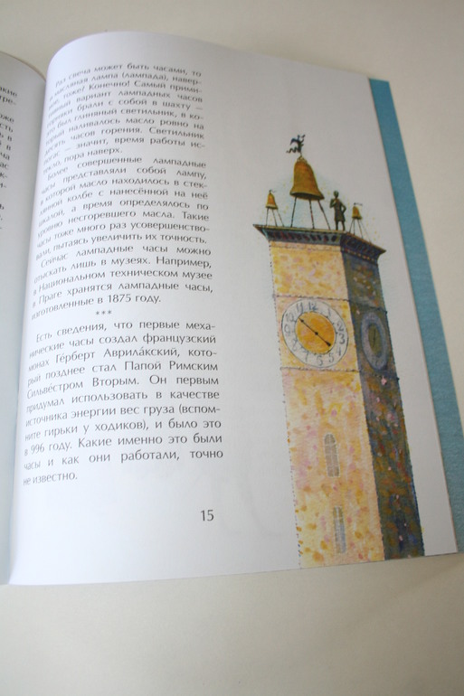 младшим школьникамКнига рассказывает юным читателям про то, как измеряли в разные столетия, начиная с солнечных часов и заканчивая атомными. На 24 страницах уместилась вся самая интересная и важная информация о часах разных времен и народов. В Китае, к примеру, в древние времена использовали огненные часы, сейчас такие не встретишь. Иллюстрации Евгения Подколзина помогают ребенку понять, как выглядели водяные, огненные, свечные часы, гномон, а также знаменитые часы Страсбурга.