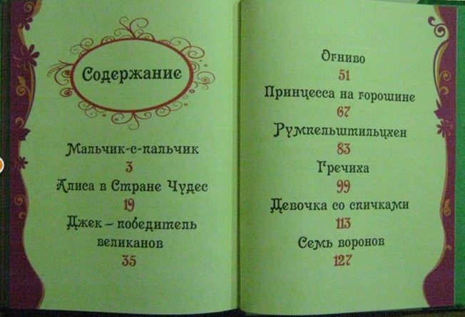 Но это еще не все. Само содержание сказок наводит на мысль, что эта самая Сызранова должна была за ночь наклепать с десяток сказок для книги. Она собрала все,что пришло ей в голову, смешала все это и записала. Понятно, что все большинство этих сказок - старинные сюжеты, перекроенные по сто раз. Но какие-то границы должны быть! Мне показалось, что во многие сказки впихнули какие-то лишние сюжетные повороты. Зато многие вещи сильно укорочены. Про Алису я вообще молчу, одно сплошное недоразумение. Просто сверх-короткий пересказ, не остается ни смысла, ничего. Еще более-менее написано "Огниво", "Румпельштильцхен", "Принцесса на горошине".