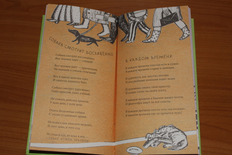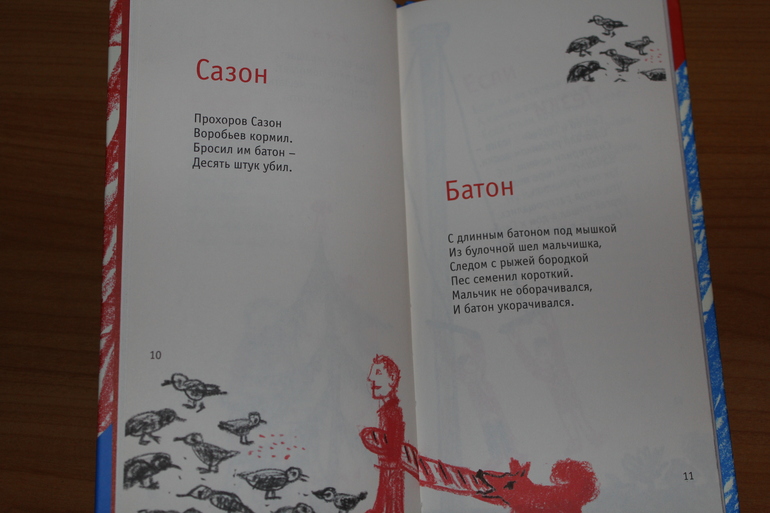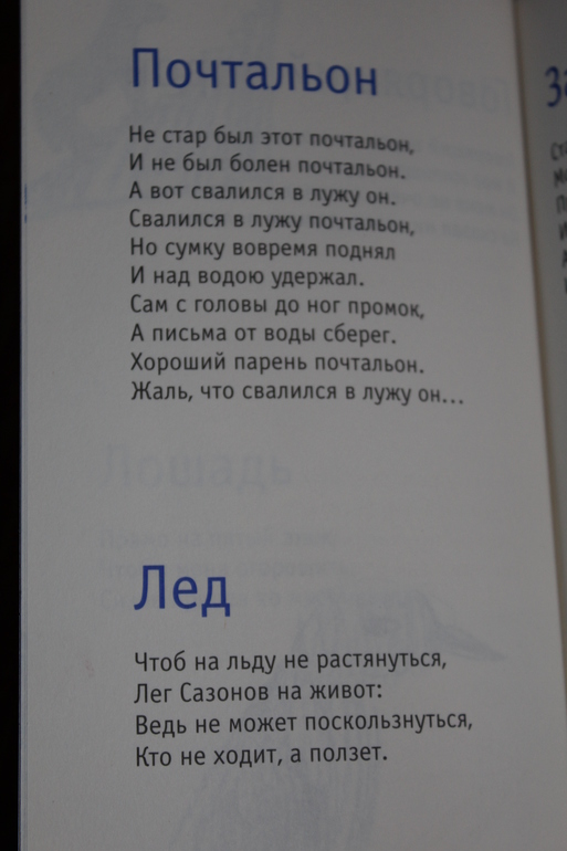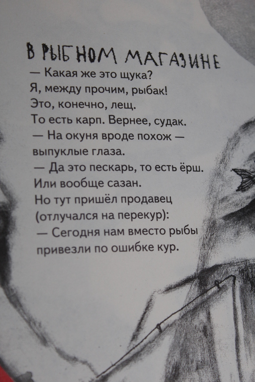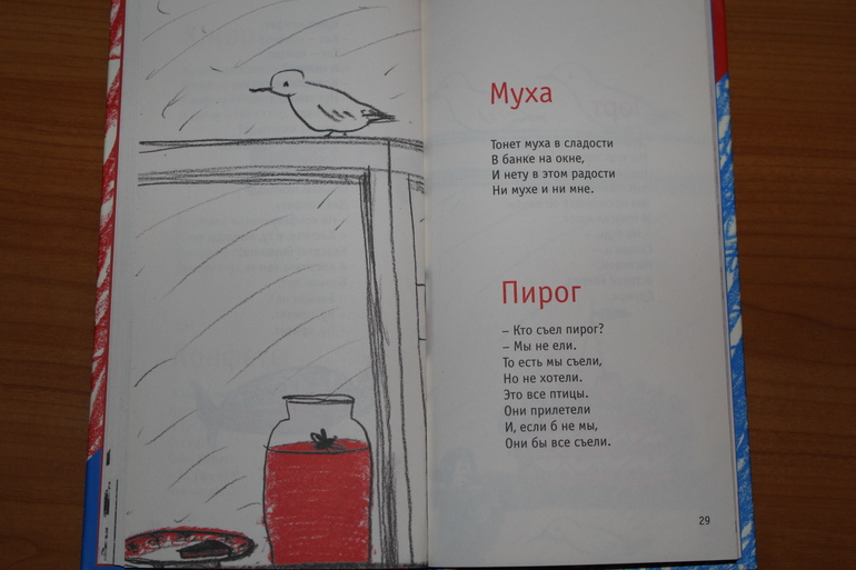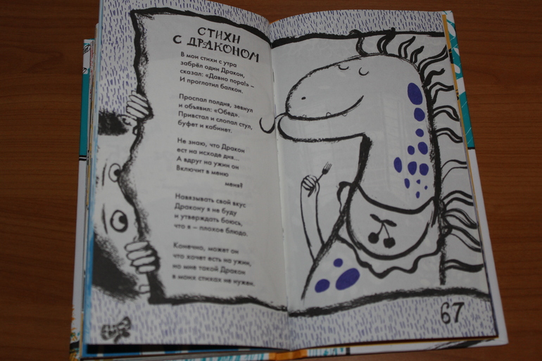 Отзыв сына: " Начал читать и удивился - я знаю половину этих стихов! Слышал, как мама Насте их читала. Очень понравились: "Стихи с горчицей", "Мальчик из чулана", "Как карась читал свои стихи о щуке", "Кто чем спасается"."