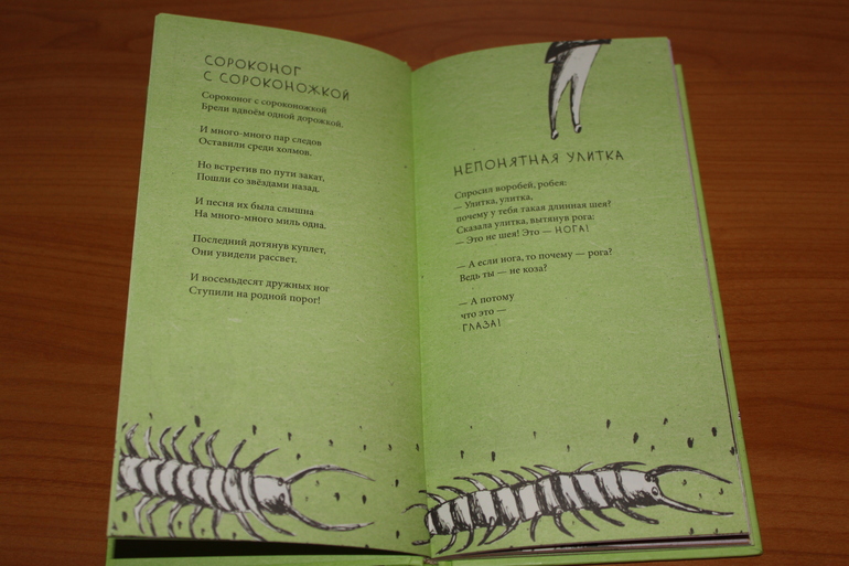 Отзыв сына. Скопирую из его июньского дневника чтения: "Хорошая книжка с хорошими стихами. Много стихов мне понравилось, но не все. Я люблю весёлую поэзию. Лучшие, на мой взгляд, стихи в этой книге: "Под стуки колёс", "Как воробей стихи сочинял", "Слетело с ветки яблоко", Шахматные короли", "Удивительное дело приключилось в огороде", "Яблоко пишет, а тыква читает". Я эти стихи даже читать спокойно не мог, смеялся. А стих "Английская голова" прям как про меня!"