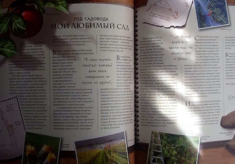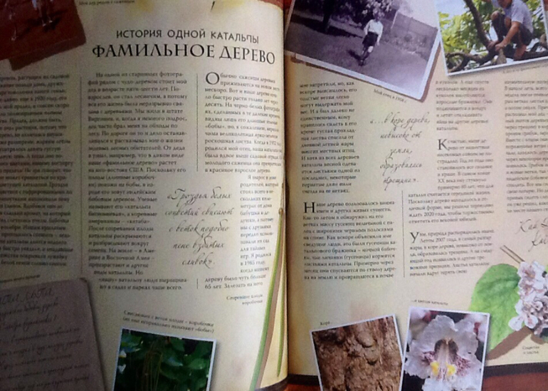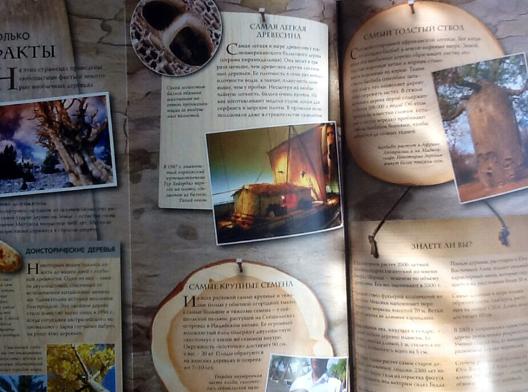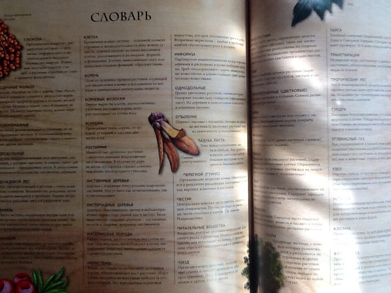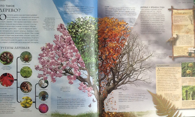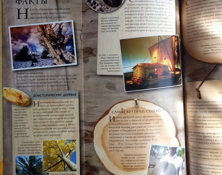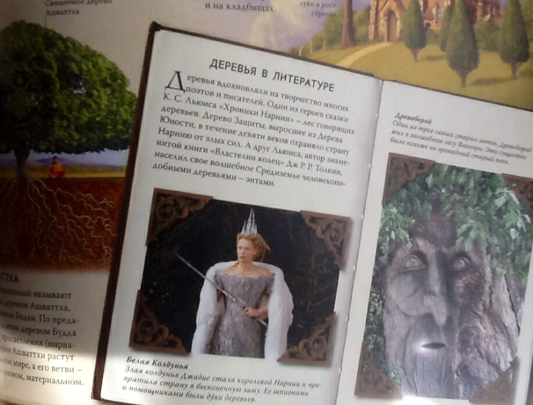 Помимо энциклопедической информации, есть еще две интересные истории, связанные с деревьями: «Фамильное дерево» и «Мой любимый сад». Очень интересный раздел «Мифы и легенды о деревьях.»