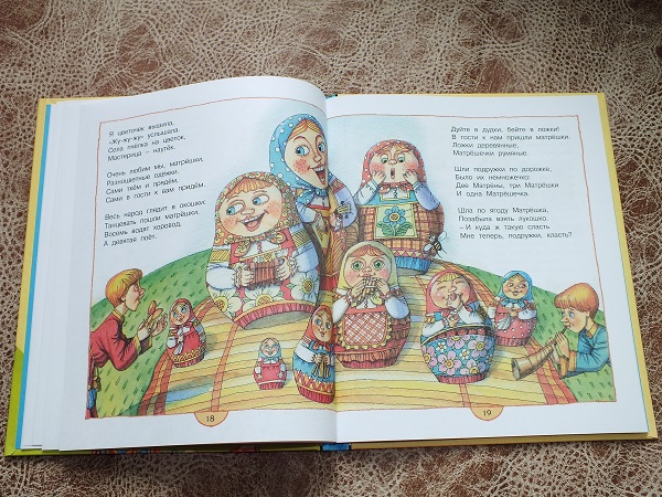 Сейчас читали на ночь. Стихи все классные! Картинки некоторые раздражают. Хотя матрешки сами (на иллюстрациях имею ввиду) в целом ничего. Только хотелось бы на каждую частушку отдельную картинку.