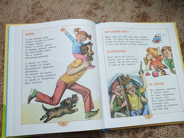 Большой бонус для меня оказался под обложкой (по содержанию я не обратила внимания) - это стихотворение "Как хорошо уметь читать" ("Читалочка") и несколько стихотворений о кошках. Младшая сразу схватила эту книгу (конечно же вместе с тонкой книжечкой "Котёнок") и сказала, что будем читать их перед сном.