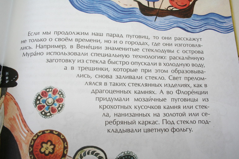 дошкольникамПарад Пуговиц - 51 издательства Настя и Никита. Обложка матовая, бумага плотная, шрифт крупный, книжка отлично походит для самостоятельного прочтения детьми. Прочитав ''Парад Пуговиц'', Вы узнаете, что в Древнем Египте военачальники награждали своих подчиненных пуговицами - большими дисками из золота или серебра, украшавшими верхние полы одежды, в 15 - 16 веках пуговицы стали украшать драгоценными камнями, их передавали по наследству и включали в приданное невесте, а в свое время Петр Первый издал указ о количестве пуговиц, которое разрешалось пришивать к одежде в зависимости от роста человека и его состояния. Яркие, сочные иллюстрации Герасимовой Дарьи не дадут ребенку заскучать и помогут понять, какими были пуговицы в разные времена.