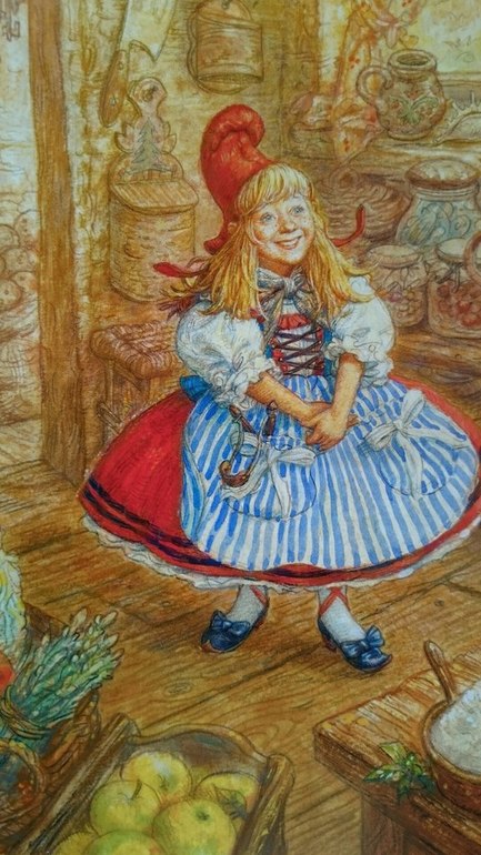 Бабушка наверняка любит пирожки с яблоками! Полосатый передничек, веснушки и щечки с ямочками - яблочками---вуаля!---внучка готова !