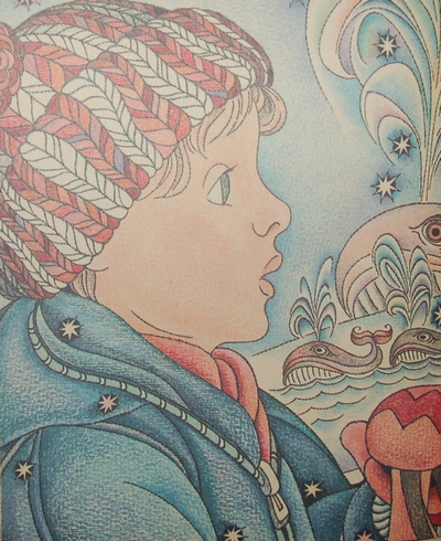 8. И в завершение полосатая вязаная шапочка из книги Новосибирского книжного издательства "Мы идем к луне" В.Сапожникова с рисунками И.Сокол.