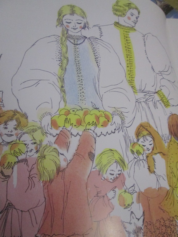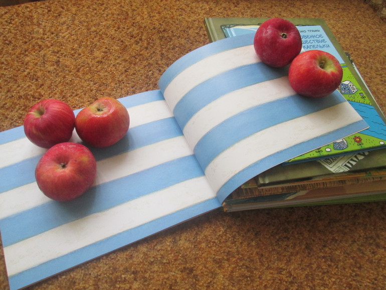 Сегодня, по случаю, рассказала старшей дочери о празднике и предложила поучаствовать в ФМ, объяснив суть - ищем яблочки и полоски в рисунках любимых книг. Заранее не готовились, так что возможно у нас не такие красивые фото, как у других книголюбов)) Возможны и повторения, я пока ничего не успела перечитать(