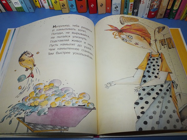 Вера прямо построчно выполняет всё, что советует автор и безудержно смеется. А после первого прочтения заявила: "Мам, а помнишь, мы видели такого мальчика в магазине? У него, наверно, тоже такая книжка есть?"