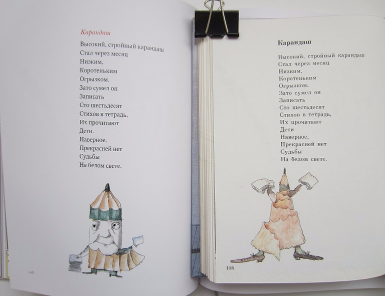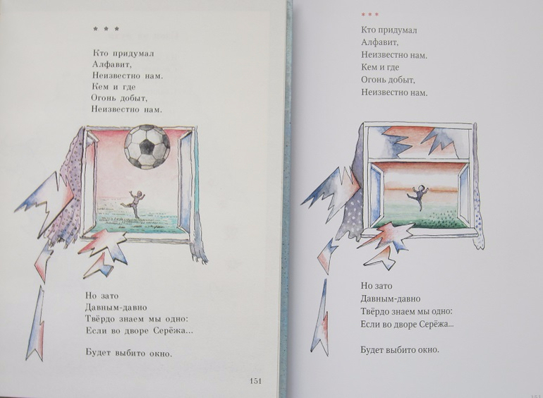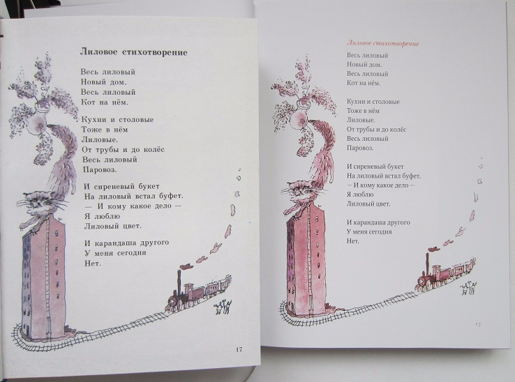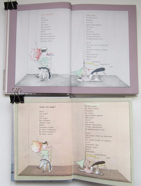 И я вначале удивилась: почему формат другой? Но чем больше листала старый сборник, чем чаще встречала развороты, где иллюстрациям и стихотворениям на самом деле тесно, тем больше мне нравился простор на современных страницах!