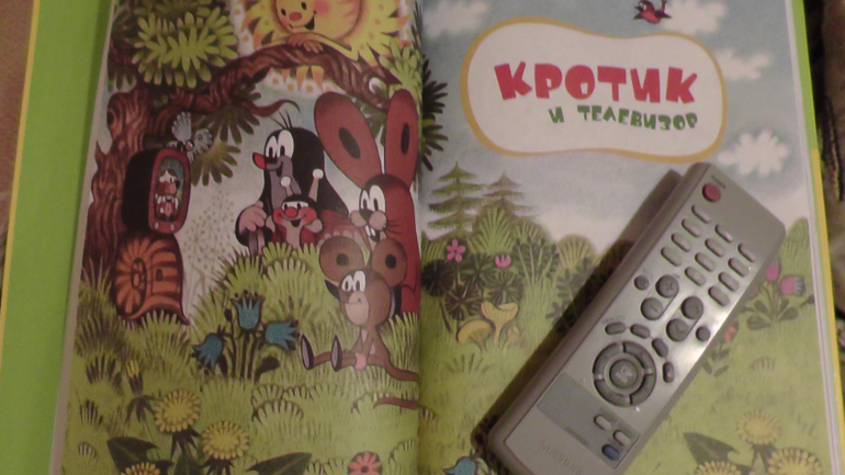 2 Кротик и телевизор. В лесу появился телевизор и все зверье погрязло в голубом экране. В итоге Кротик играл один, всю осень, зиму, весну. Написано с юмором. звери приненесли себе подухи, чтобы было удобно, и холод их не брал. Весной они оказались в западне из растений, а Кротик их спас. А Месяц так засмотрелся ТВ, что вскочил в звездный Ковш и улетел на нем, чтобы не опоздать к рассвету.