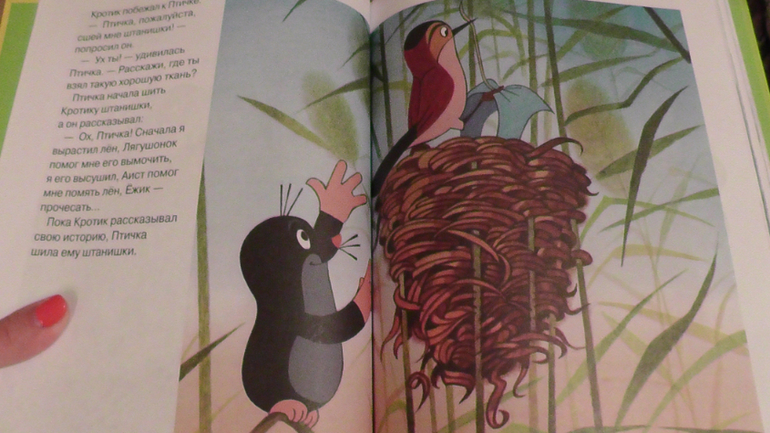 1. Кротик и штанишки. Бобр Кастор просто отдыхает. Если в мультике еще не совсем понятно, что они так долго там делают, то тут уж сомнений нет-описан весь процесс изготовления штанов от создания ткани ( ТКАНИ!!) до раскройки и шитья!! Долго их делали в общем, но очень захватывающее.Вообще все рассказы полны хорошим смыслом и познавательными моментами.
