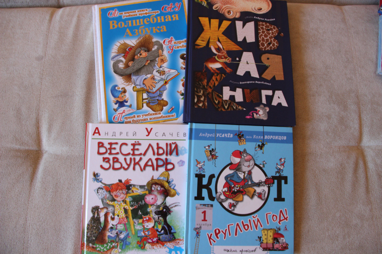 Это наш Усачев. Мы с Ромкой являемся его поклонниками - "азбуку" зачитали до дыр, я выучила ее наизусть, одно время читали только ее по сто раз на дню, сын выучил по ней все буквы, даже твердый знак, который он называет просто "знак")))