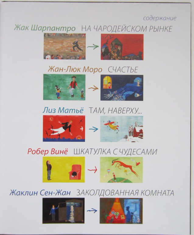 Пять поэтов - пять разделов. Каждый раздел начинается с портрета поэта. Но портрет этот необычный))) Все они в стране Детства! Когда Михаилу Бычкову пришла в голову мысль именно так оформить книгу - попросили у французской стороны фотографии поэтов. Конечно же, они затем захотели увидеть результат. И знаете, что сказала Лиз Матьё?)))