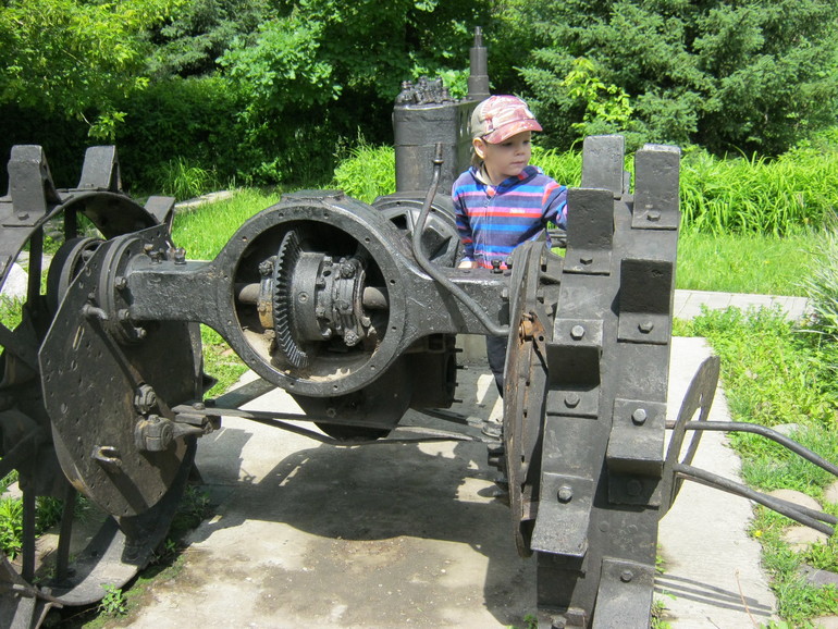 Вот Максим осваивает такой же трактор - поскольку он был один, мы с ним много колесили по городу и гуляли в разных местах