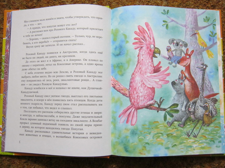 Ах, как понравились детям два года назад сказки про Австралию Что было в сумке у кенгуру! Как внимательно и радостно слушали, переживали, удивлялись. Как им и мне нравился Розовый Какаду со своей Какадуньей! Даша с Соней, смеялись, пробуя на вкус слова-прозвища, без конца повторяя, называя друг друга "Душечка-Какадушечка". Тогда все сразу запомнили и стали находить Австралию на карте и на глобусе, заодно приохотились читать разные географические названия, а вся австралийская живность стала им близкой и родной )