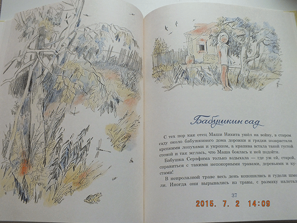 Отдельно стоит сказать о художнике. Карандашные рисунки прекрасны. У меня еще "Голубая чашка" Гайдара с Гальдяевым. Обе книги прекрасны. Но это лучше видеть.