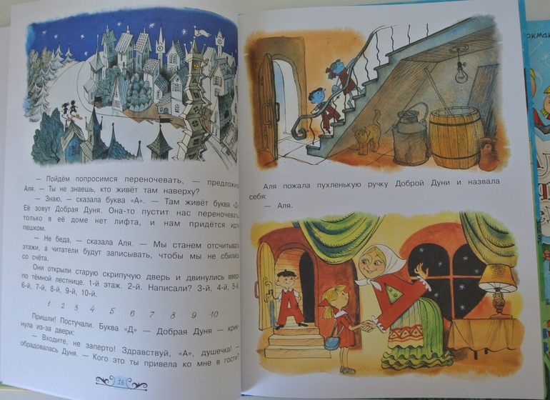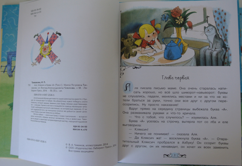 А чуть позже выяснилось, что это вторая книга. А есть еще про букву "А". Как раз для начинающих считать и изучать буквы. Конечно же купили и ее (тоже с иллюстрациями Чижикова, но изд-во Махаон).