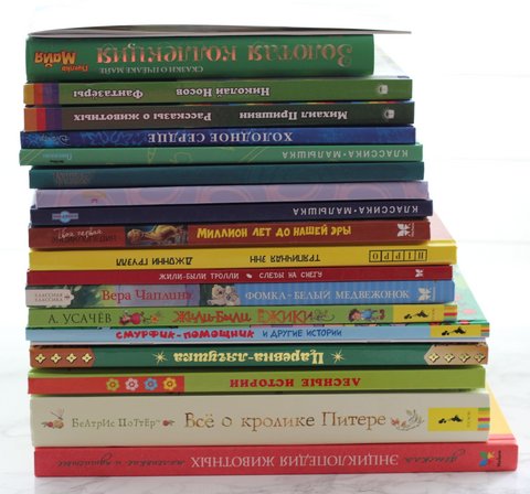 Вот такая стопочка набралась у нас. И еще "Принцесса из апельсина" читалась в гостях у бабушки.