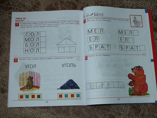 Вчера занимались первый раз. Ребенок не остановился на одной теме, а попросил ещё и сделать вторую (то есть сделали задание на двух разворотах). Мне кажется, это о чем-то говорит. Значит всё изложено интересно, понятно и доступно.