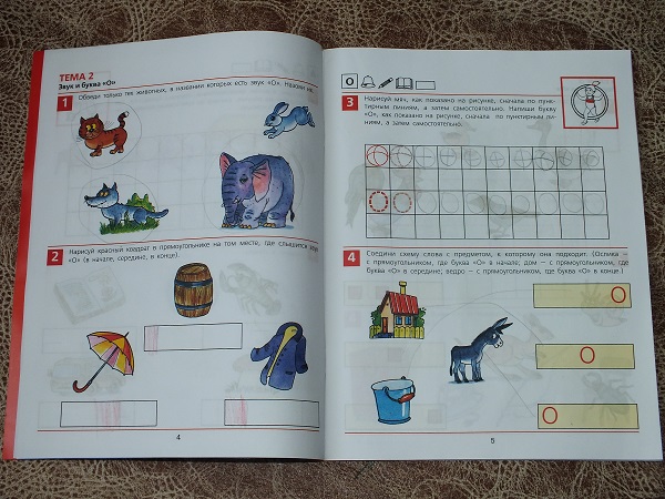 Далее уроки строятся практически по одному и тому же принципу: услышь и обведи/нарисуй/соедини, где ты слышишь такой-то звук в слове (или в каком слове он присутствует).