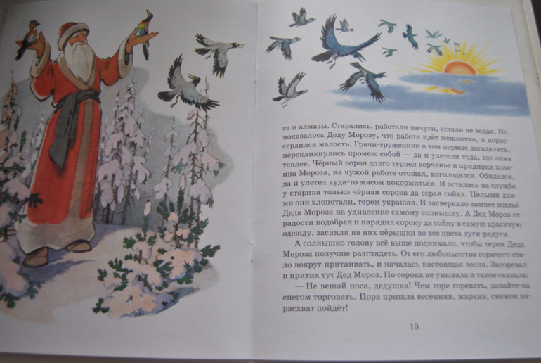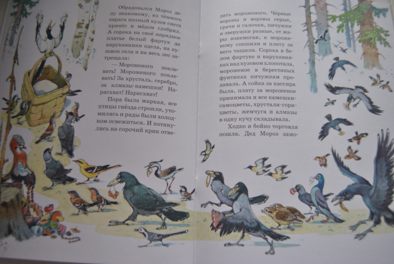 О том как сорока и сойка помогали украшать терем Деду Морозу, как он наградил их за труд, как они продавали мороженое и почему сороки любят всё блестящее