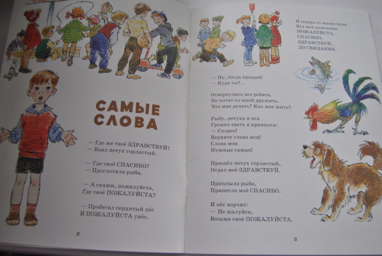 Стихи разнообразные, познавательные. ( например сперва думаем, потом говорим, компания добрых "волшебных" слов: Здравствуй, Спасибо, Пожалуйста, до свидания, Наше и моё, "сонное стихотворение" -Зевота и другие