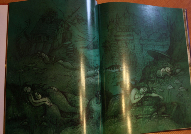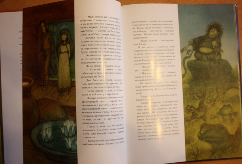 Решила отхватить такую ценность, и еще осталось 2-3 книги. На стенде мне хвалили книгу за отличную меловку, но на мой взгляд меловка очень блестящая, местами выглядит как стеклянная поверхность и сильно бликует. Когда я сказала, что она сильно бликует, мне рассказали, что это был первый тираж, а потом еще 2а тиража, все книги раскупили, их нигде нет. Поэтому я все равно взяла.