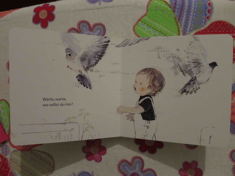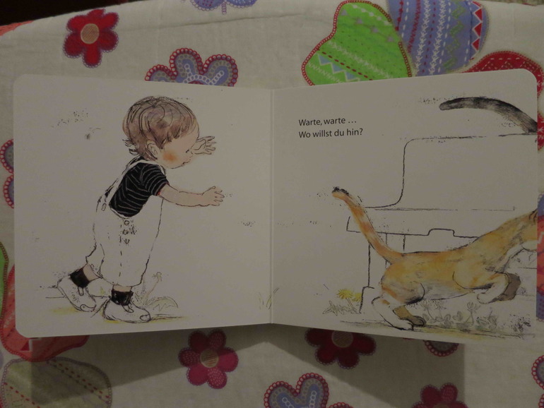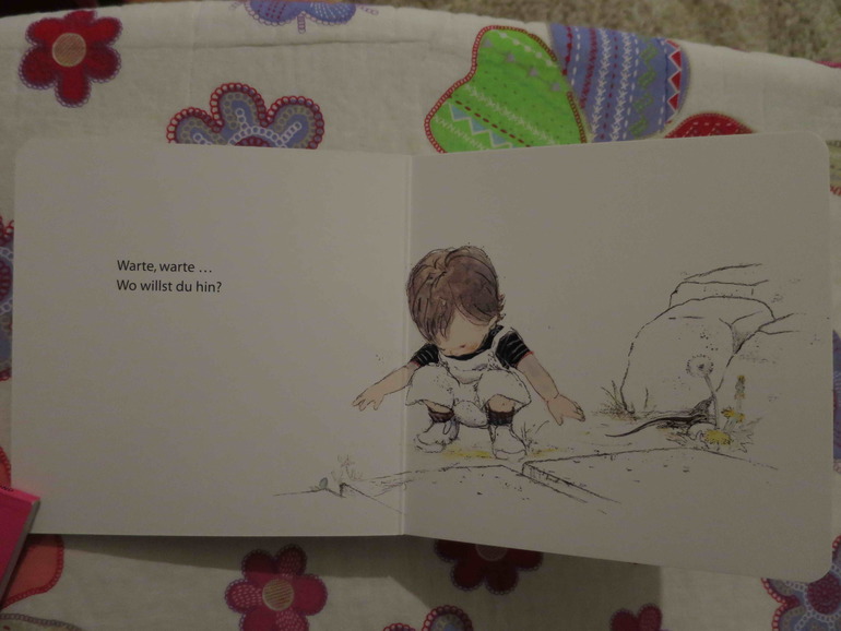 Четвёртая книга "Warte, warte - wo willst du hin?" (Постой, куда ты), картонка, тоже не обходится без дочиного внимания, но, не так часто, как другие три. Текста почти нет! Но, иллюстрации превосходны!