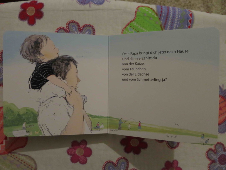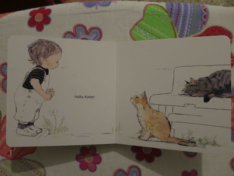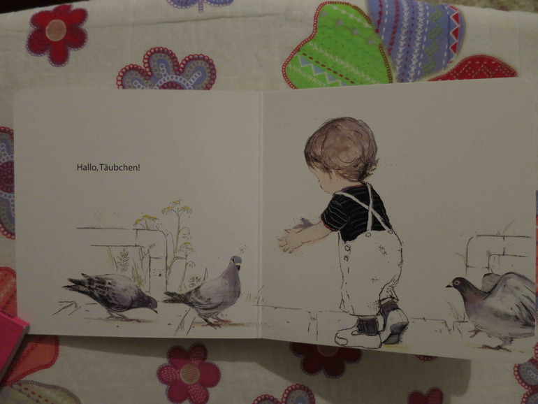 И вот книга пришла... Переплет поначалу разочаровал: мягкая обложка, листы как вклеены... Думала: ну, долго не протянет. А вот нет, страницы оказались вшиты... А сама книга у дочи (2г.2м.) один из главных хитов на немецком языке! Читается каждый день и ...остаётся в целости и сохранности :)