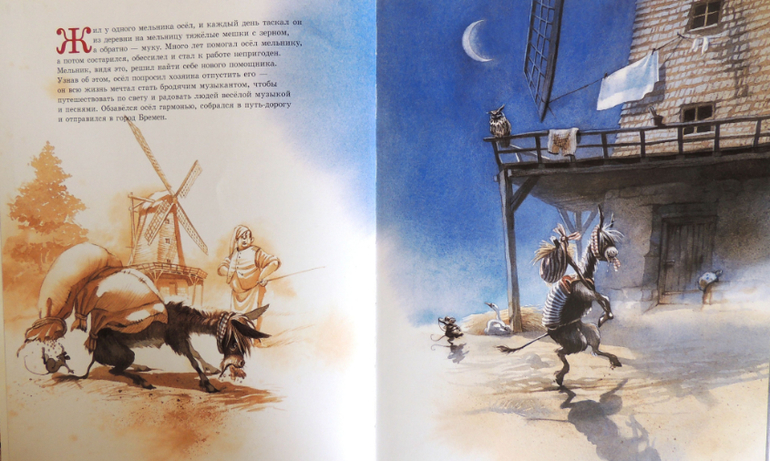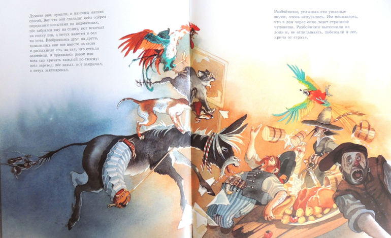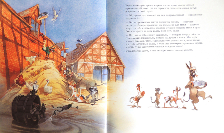 Как же я не люблю, когда у разных издательств выходит одна книга с разными замечательными иллюстрациями. Кошелек упрямо говорит тебе: "надо выбрать одну", и ты мучаешься, выбираешь, и в результате, все-равно жалеешь, что не взяла обе. К чему это я, "Бременские музыканты" у нас с Д. Айзенбургер, очень нравятся, но вот как же быть с изд-вом "Речь" теперь, прям не знаю...