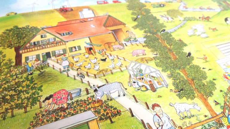Я долго сопротивлялась этой покупке, считая книгу совсем необязательной... Долго не могла понять, что в ней такого особенного... пока она не поселилась в нашем доме. Теперь она лежит у нас около кровати, что является признаком абсолютного хита. Жалею, что не купила раньше. Варю обед, а в квартире тихо, захожу в детскую, а там мой ребенок, который не может усидеть на одном месте больше минуты, рассматривает книжку! Теперь наша любимая игра - найти одного и того же героя на каждой странице. Не важно, что в книге нет слов, рассказать по рисункам можно гораздо больше, чем можно было бы написать в ней. Книга про жизнь города, про один день из жизни людей, живущих в одном доме, с которого и начинается книга, заканчиваясь в городском парке, где празднуют день рождения одной из героинь.