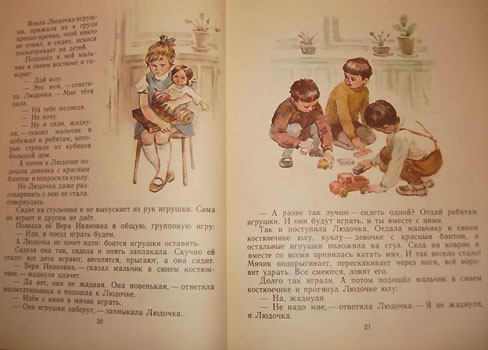 Некоторые рассказы мне напомнили немного морализаторский стиль Осеевой. Одна история даже почти один в один (про новенькую девочку в садике, которая сидела с грудой игрушек и хотела одна играть ими).
