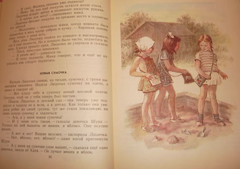 Я решила пропустить только последнюю часть - все же 5-летнему ребенку школьные реалии пока не очень понятны (не хотелось отвлекаться и рассказывать про пионеров, уроки и т.п.) Чего не сказать об остальной части книги, особенно главах про деток в детском саду и той, что называется "Так или не так?", где каждый маленький рассказик заканчивается этим вопросом. Дается прекрасная возможность ребенку порассуждать, так или не так поступил тот или иной герой.