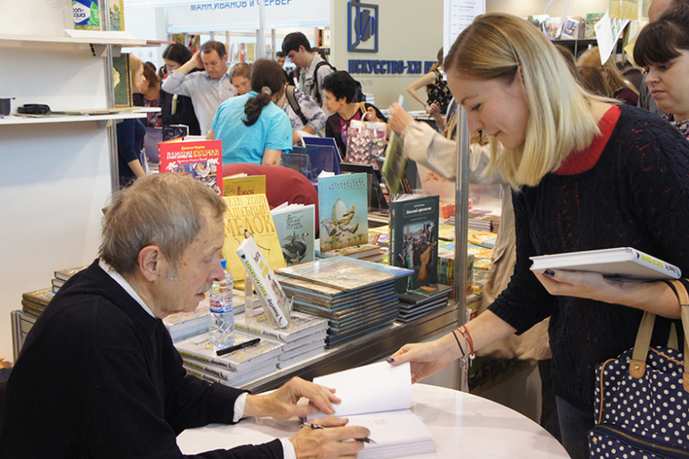А напротив Речи, в это же время, давал автографы поэт-песенник Юрий Энтин.