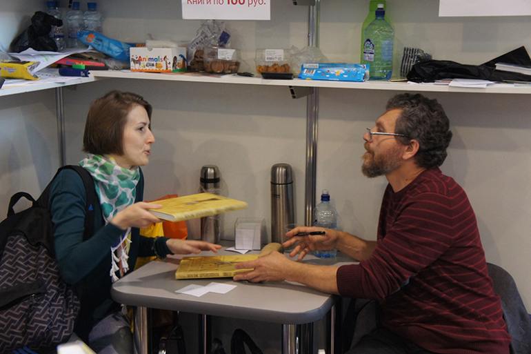Когда я спросила у Леонида, а почему они не анонсируют свои автограф-сессии на общую программу выставки, он сказал, что им не нужны пиар и километровые очереди. Что это их подарок НАМ!))) Кто знает, тот придет. А больше и не нужно.