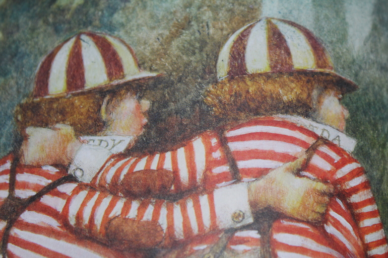Опять меня иллюстрации озадачили. На первой картинке отлично видно, что нарисованы мальчики. Переворачиваю страницу, и мальчики становятся стариками! Мне уже не верится, что рисовал один художник."