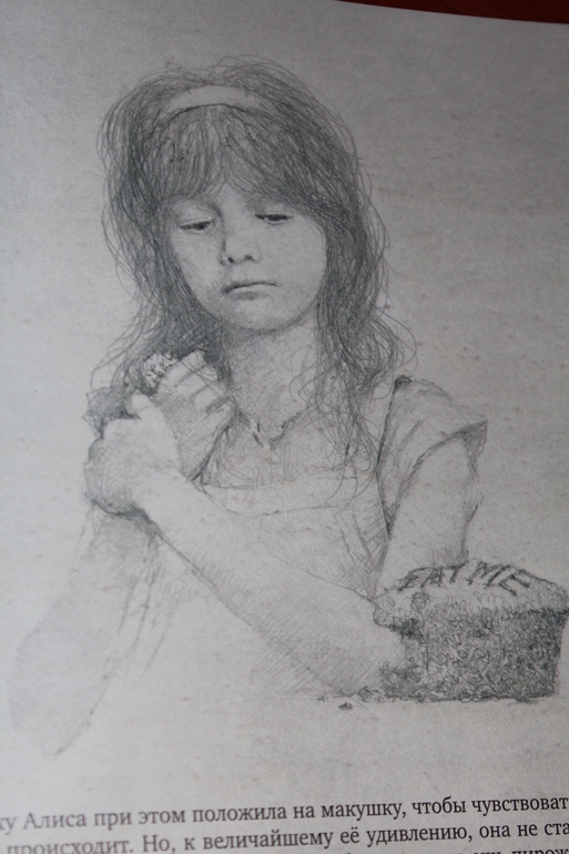 "Замечательная книга! Невозможно оторваться! Чудеса на каждом шагу. Каждая новая страница - новое приключение. Только у меня вопрос, почему на многих рисунках у Алисы одна и та же поза?"