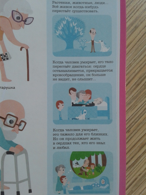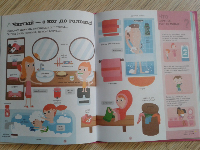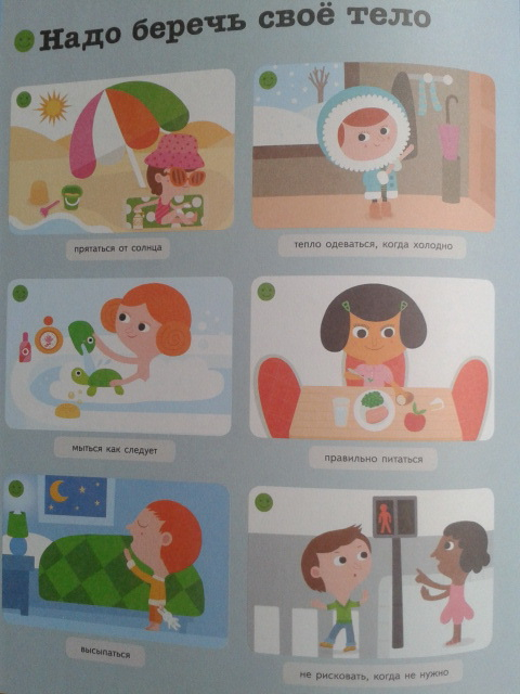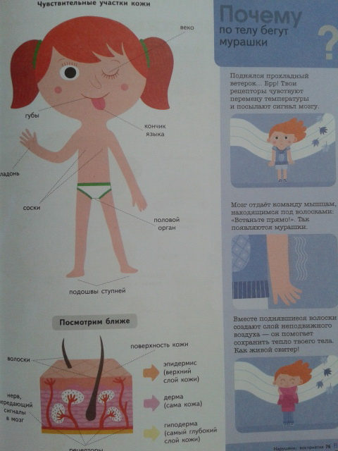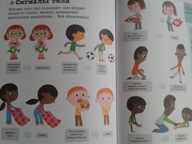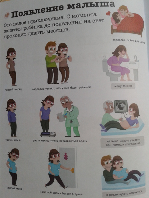 Еще очень интересно подана информация о том, что может с телом происходить. Про такое хорошо поговорить с ребенком заранее, чтоб столкнувшись он знал что с ним. Просто так без картинок и не объяснишь и даже не подумаешь об этом поговорить.