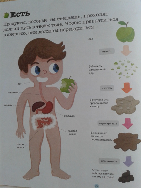 Пищеварение - первая тема заинтересовавшая моего ребенка без наводок с моей стороны. Первое время часто рассказывала что с едой происходит. Все изображено схематично, точно с точки зрения физиологии, понятно для малышей и взрослых.